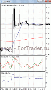 Цены приближаются к уровню сопротивления 0.8850. Если им удастся его преодолеть, стоит ждать дальнейшего роста к отметке 0.89. О начале фазы роста своим разворотом сигнализировали осцилляторы на 4-х часовом графике (рис.1). В то же время МА (10) и МА (100) направлены вниз. Поэтому вполне возможно, что цены после отката возобновят падение и еще раз попытаются зафиксироваться ниже отметки 0.88.