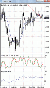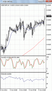 На часовом графике (рис.2) ситуация складывается аналогичным образом. Обе скользящие средние достаточно уверенно направлены вверх. В том же направлении развернулся и RSI. SS, напротив, приобрел нисходящую направленность, поэтому не стоит полностью исключать вероятность возвратного хода к отметке 0.9240.