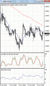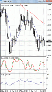 На часовом графике (рис.2) МА (100) и МА (10) устремлены вниз. Это подтверждает предположение о возможности того, что цены после отката возобновят нисходящее движение и еще раз попытаются преодолеть поддержку 1.54. Вниз наметил разворот и осциллятор RSI.