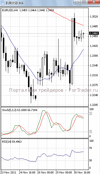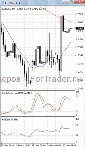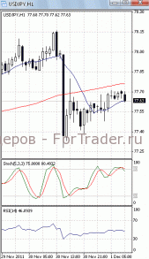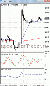 На часовом графике (рис.2) обе скользящие средние направлены вверх. В ту же сторону развернулся и RSI. Все это подтверждает предположение о возможности возврата цен к сопротивлению 1.3525. SS направлен вниз.