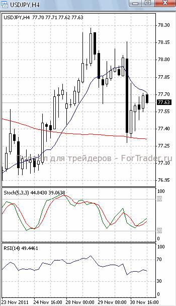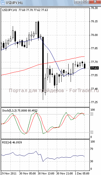 Цены пытаются преодолеть уровень сопротивления 77.60. Если им это удастся, стоит ждать дальнейшего роста, первичной целью которого, скорее всего, станет отметка 78.00. Но на 4-х часовом графике (рис.1) и МА (10), и МА (100) направлены вниз. В ту же сторону развернулся и осциллятор RSI. Поэтому не стоит полностью исключать возможность возобновления нисходящего движения и повторного тестирования отметки 77.30.