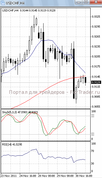 Зафиксироваться выше сопротивления 0.9150 ценам не удалось и они возобновили падение, в рамках которого будет протестирована поддержка 0.91. В пользу такого исхода позволяет говорить то, что на 4-х часовом графике (рис.1) МА (10) уверенно устремлена вниз. В то же время МА (100) направлена вверх, сигнализируя в пользу возобновления роста цен. Вверх направлен и SS.