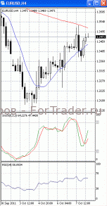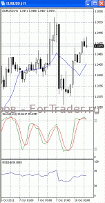 На часовом графике (рис.2) скользящие средние устремлены вверх, тем самым, подтверждая предположение о возможности прорыва указанного уровня сопротивления и дальнейшего роста. SS (вышел из зоны перекупленности) и RSI уверенно направлены вниз, сигнализируя в пользу отката.
