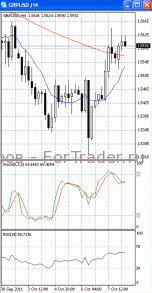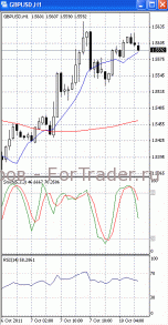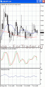 Цены консолидируются в районе уровня сопротивления 1.5600/20. Если он будет пройден, продолжится подъем, первичной целью которого, скорее всего, станет отметка 1.5660. В пользу такого исхода позволяет говорить то, что на 4-х часовом графике (рис.1) «быстрая» скользящая средняя достаточно уверенно направлена вверх. В бычьем направлении развернулся и осциллятор SS. Но МА (100) уверенно направлена вниз. Вниз направлен и RSI. Поэтому не стоит исключать возможность того, что указанный уровень пройден не будет и цены, оттолкнувшись от него, вернутся к отметке 1.5550.