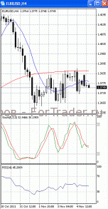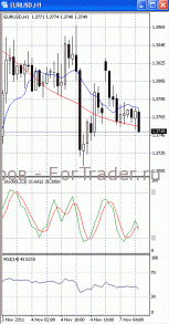 На часовом графике (рис.2) и «быстрая», и «медленная» скользящие средние направлены вниз. В том же направлении развернулись и оба осциллятора. Все это подтверждает предположение о вероятности развития нисходящего движения.