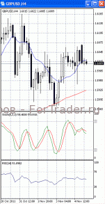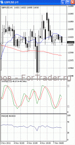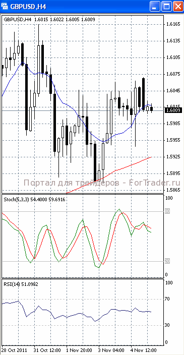 Цены приближаются к уровню поддержки 1.60. Если им удастся его преодолеть, продолжится падение, первичной целью которого, скорее всего, станет отметка 1.5960 и, далее, 1.5925. О возможности такого исхода позволяет говорить то, что на 4-х часовом графике (рис.1) МА (10) приобретает нисходящую направленность. В ту же сторону разворачивается и осциллятор RSI. В то же время МА (100) устремлена вверх, в бычьем направлении готовится развернуться и SS. Поэтому вполне возможно, что после отката цены возобновят рост и еще раз попытаются зафиксироваться выше сопротивления 1.6030.