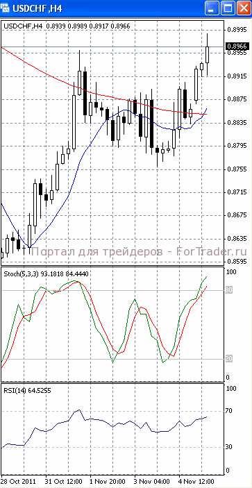 Цены зафиксировались выше уровня сопротивления 0.8950. Это позволяет ждать продолжения восходящего движения к отметке 0.90. В пользу роста позволяет говорить и то, что скользящие средние приобретают восходящую направленность. К тому же они сформировали бычье пересечение. Вверх направлены и оба осциллятора. Но SS уже вошел в зону перекупленности. Поэтому вполне возможно, что прежде чем продолжить рост, цены откатятся к отметке 0.89.