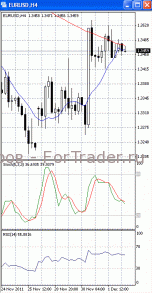 На часовом графике (рис.2) обе скользящие средние приобрели нисходящую направленность. В медвежьем направлении устремлен и SS. Все это подтверждает предположение о возможности прорыва указанного уровня поддержки и развития нисходящей фазы движения.