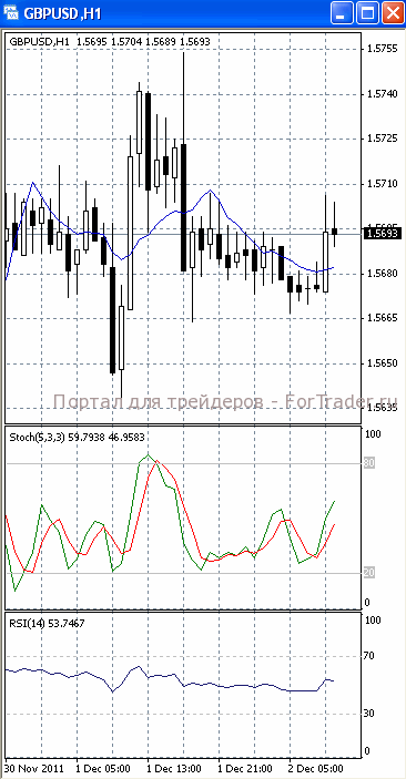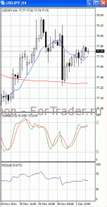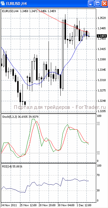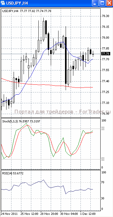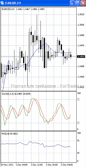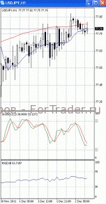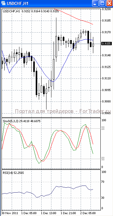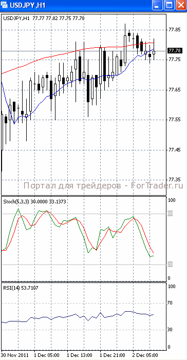 На часовом графике (рис.2) и «быстрая», и «медленная» скользящие средние направлены вверх, сигнализируя о возможности развития фазы роста. В ту же сторону разворачиваются и RSI, и SS.