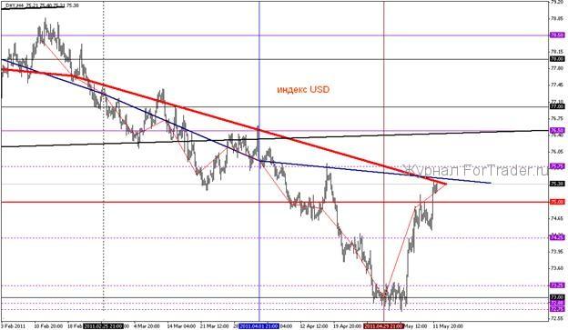 Диапазон снижения котировок курса EUR/USD в период торгов в четверг, 12 мая, ограничен уровнем 1,4075 и уровнем 1,412. Вероятнее всего в период четверга формирование консолидации в области 1,4150-1,4195.