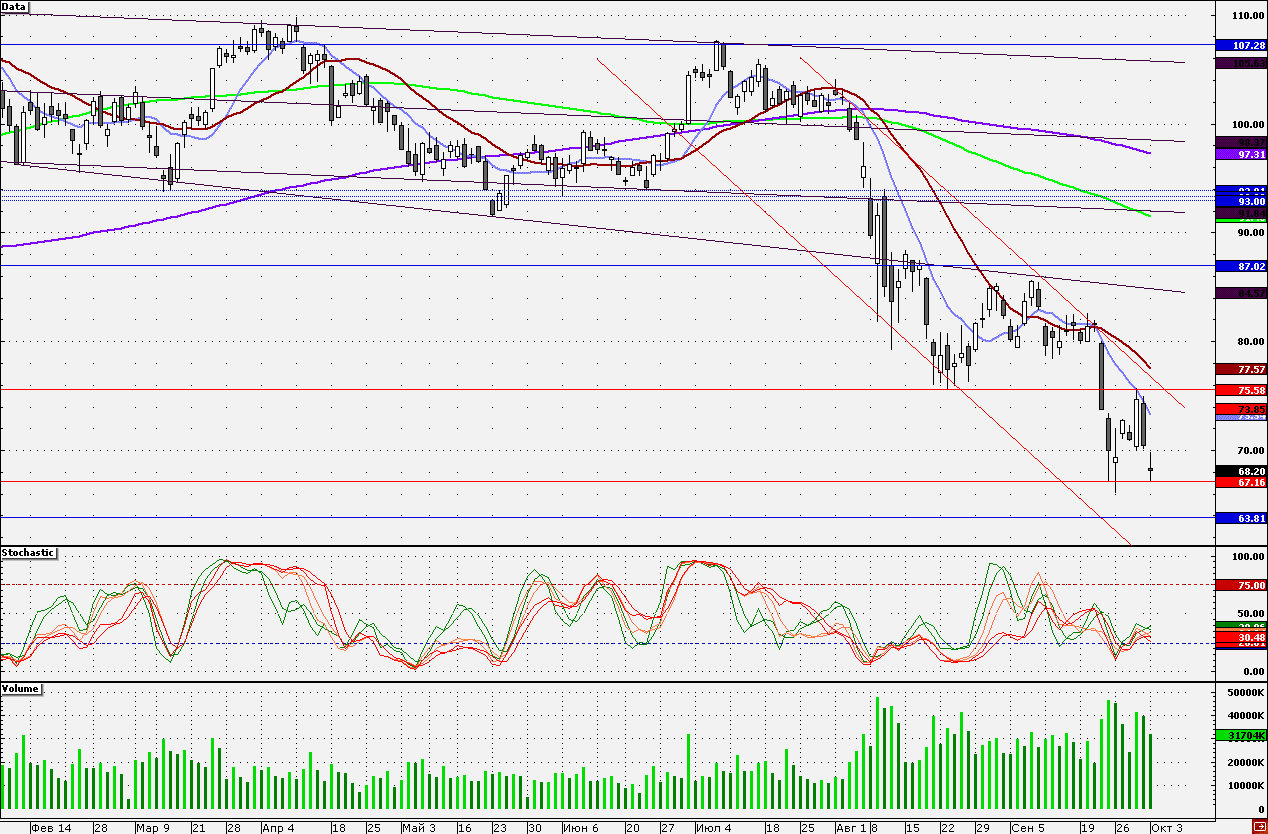 Акции банка сегодня могут попытаться переписать минимум года, установленный на отметке 66,02 руб. К данному уровню акции устремятся в случае успешного преодоления 67,16 коп. Сопротивлением является 70 руб.