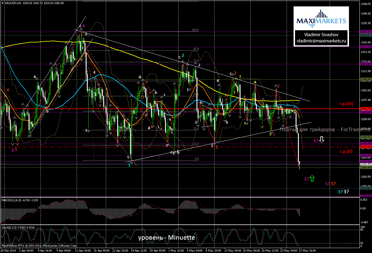 Распродажи золота набирают оборот за счёт продолжающейся ликвидации «длинных» позиций. Капитуляцию «быков» спровоцировала длительная неспособность металла преодолеть жёсткую оборону «медведей» на ценовом уровне 1308$ за унцию. Кроме того, драйверами снижения стали итоги выборов президента Украины, которые, по мнению рынка, ослабят напряжённые отношения страны с Россией, поскольку российские власти выразили готовность работать с новым руководством Украины. Дополнительным фактором, снизившим спрос на металлы, стало укрепление американского доллара по всему спектру рынка. В результате цены на золото обвалились до 5-недельного минимума, зафиксировав основание снижения на отметке 1264.24$ за унцию. Стоимость серебра продублировала ценовую динамику золота, отметив дневной минимум вблизи ключевого уровня поддержки 19$ за унцию.