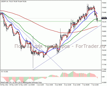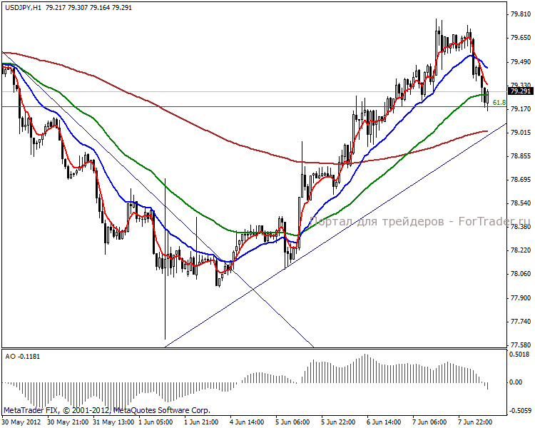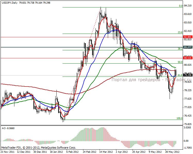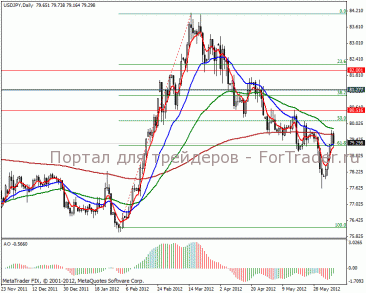 За торговую неделю пара возобновила свой торговый диапазон и растущая тенденция набирает оборот. Последняя макро статистика была достаточно позитивна. В США уменьшается безработица, а ВВП Японии в реальном выражении за I квартал текущего года, по пересмотренным данным, вырос на 1.2% относительно IV квартала 2011 года. Реальный ВВП в перерасчете за год вырос на 4.7% за отчетный квартал. По предварительным данным, рост ВВП составлял 1% по отношению к предыдущему кварталу и 4.1% в перерасчете на год. Такие данные будут отыгрывать весомое нисхождение валютной пары в ближайшее время.