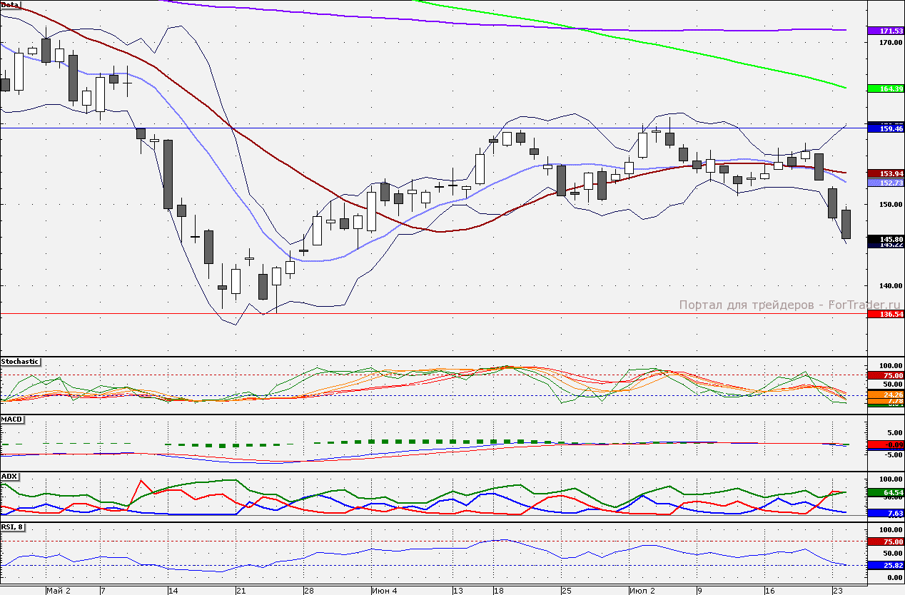 Ближайшие уровни поддержки: 145,00/140,00