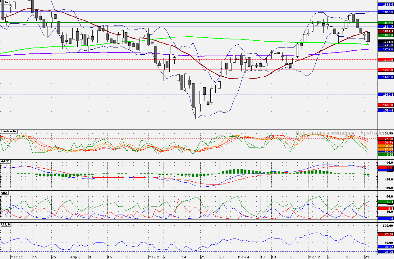 Ближайшие уровни сопротивления: 1800,00/1811,10/1835,00/1850,00