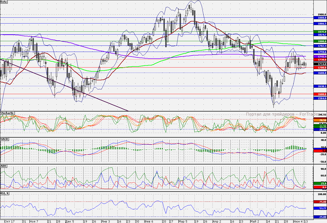 Ближайшие уровни поддержки: 1700,00/1680,00