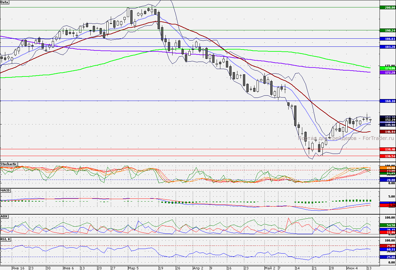 Ближайшие уровни сопротивления: 153,00/155,00/160,00
