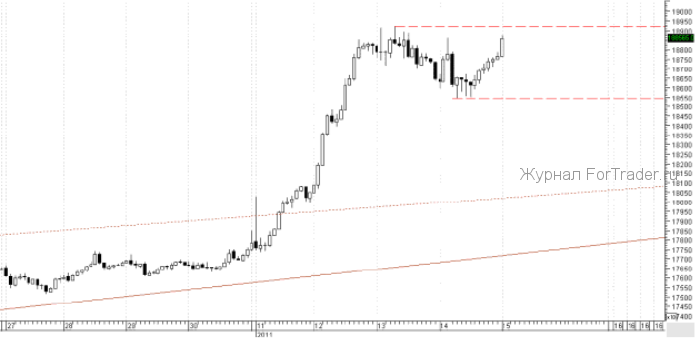 Сегодня ожидается смешанное движение фьючерса на индекс РТС в течение торгов. Ближайшее предполагаемое сопротивление проходит на отметке 189235. Ближайшая предполагаемая поддержка расположена в районе 185 450.
