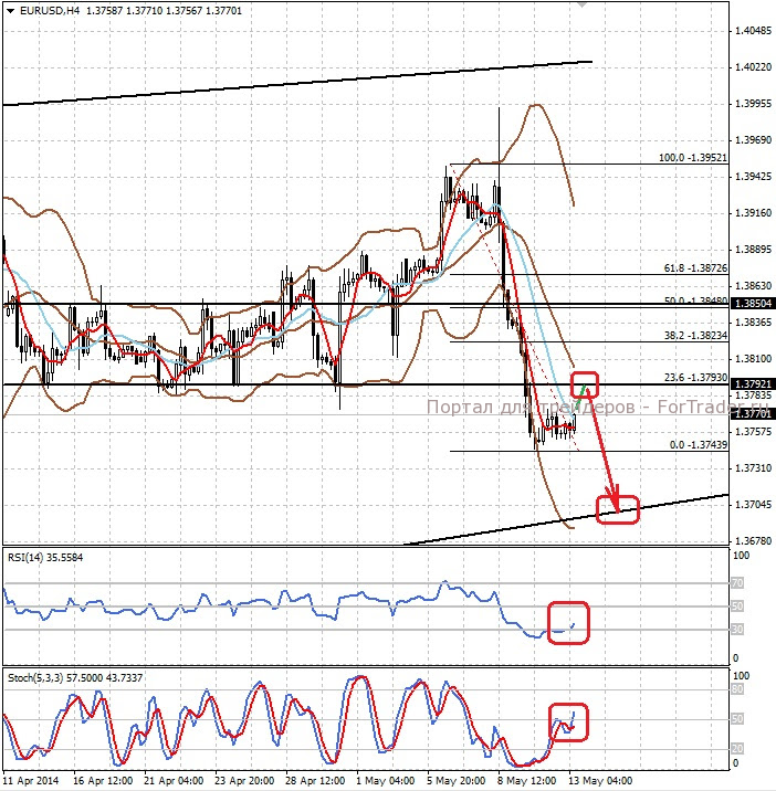 Продаем пару на откате вверх с целью 1.3700, если данные индекса экономических настроений окажутся хуже прогноза.