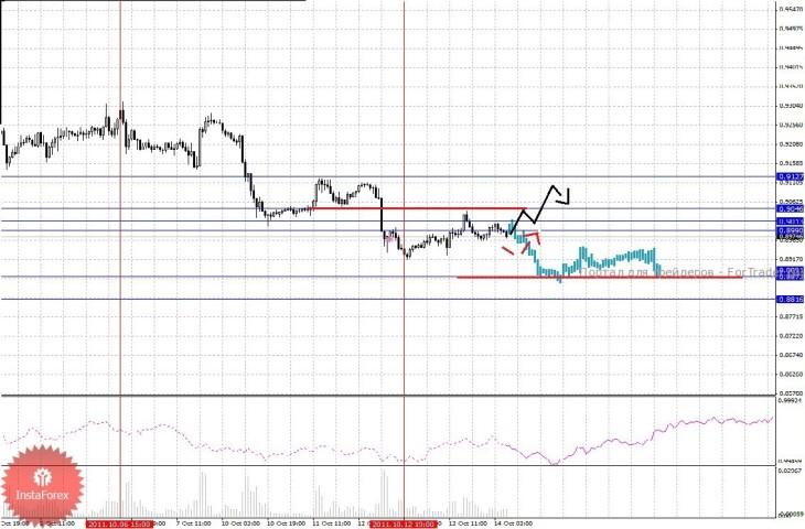 По паре Доллар/Франк ключевым уровня являются: 0.9127, 0.9046, 0.9013, 0.8990, 0.8891, 0.8873 и 0.8816. Здесь мы продолжаем следить за нисходящим циклом от 6 октября, также здесь формируется небольшой потенциал для верха от 12 октября. Продолжения движения к низу, ожидаем после прохода ценой шумового диапазона 0.8891 – 0.8873, в данном случае цель 0.8816, по достижении этого уровня ожидаем откат к верху. Корректировочное восходящее движение, возможно в диапазоне 0.8990 – 0.9013, пробой последнего значения приведет к углубленной коррекции, здесь цель 0.9046, от этого уровня высока вероятность разворота к низу, его пробой окажет негативное влияние на развитие нисходящей тенденции в масштабе Н1, в данном случае цели пока не определены. Уровень 0.9127 является ключевым сопротивлением для верха и интересен с точки зрения среднесрочной перспективы, до него мы ожидаем оформления начальных условий.