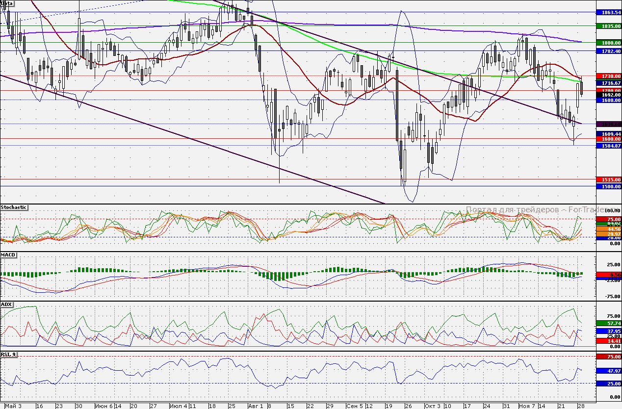 Ближайшие уровни сопротивления: 1730,00/1750,00/1780,00/1800,00