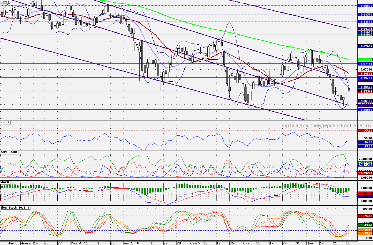 Акции ВТБ закрылись на поддержке 6,4 коп. Сопротивлением является 6,5 коп., от данного уровня «лонги» стоит сокращать. Целью для снижения является 6,207 коп., для достижения данной отметки акциям сначала нужно протии отметку 6,3 коп.