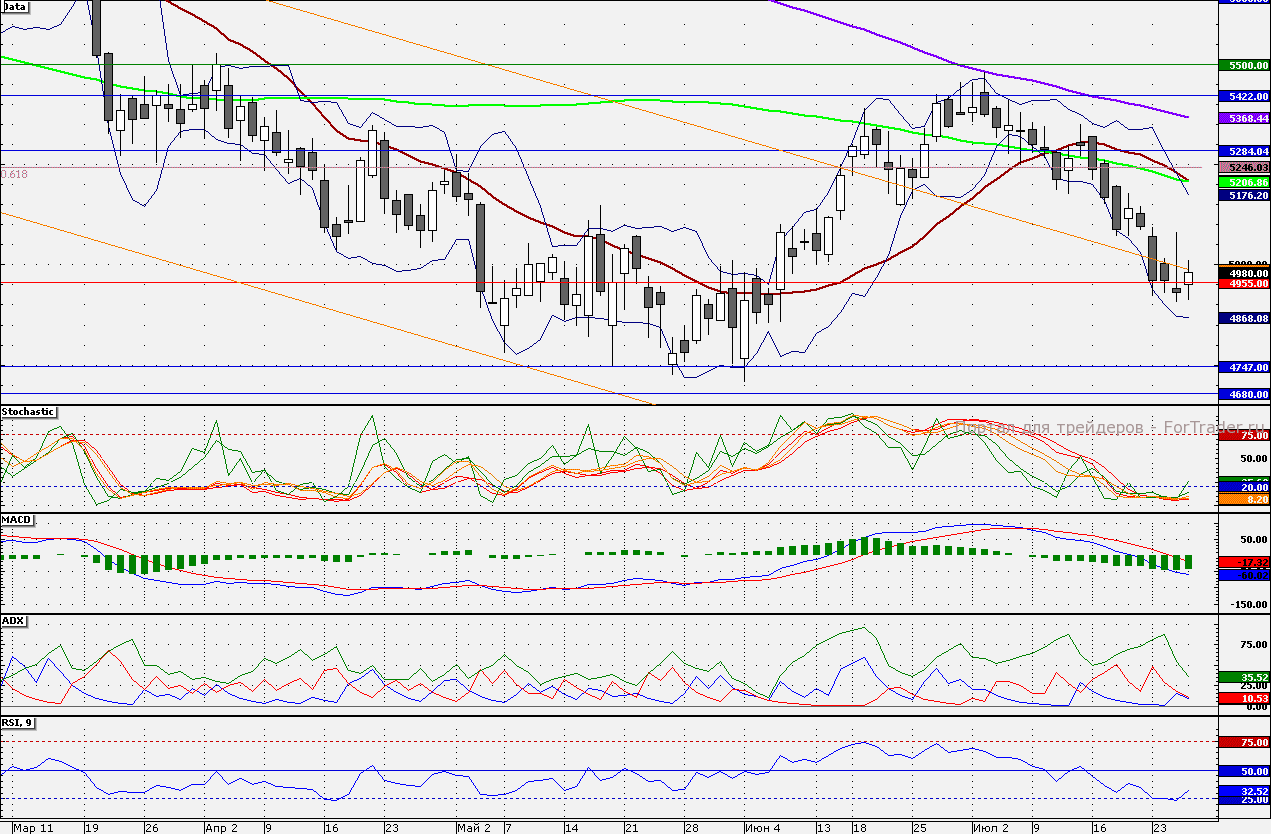 Ближайшие уровни сопротивления: 5000,00/5100,00/5250,00/5300,00