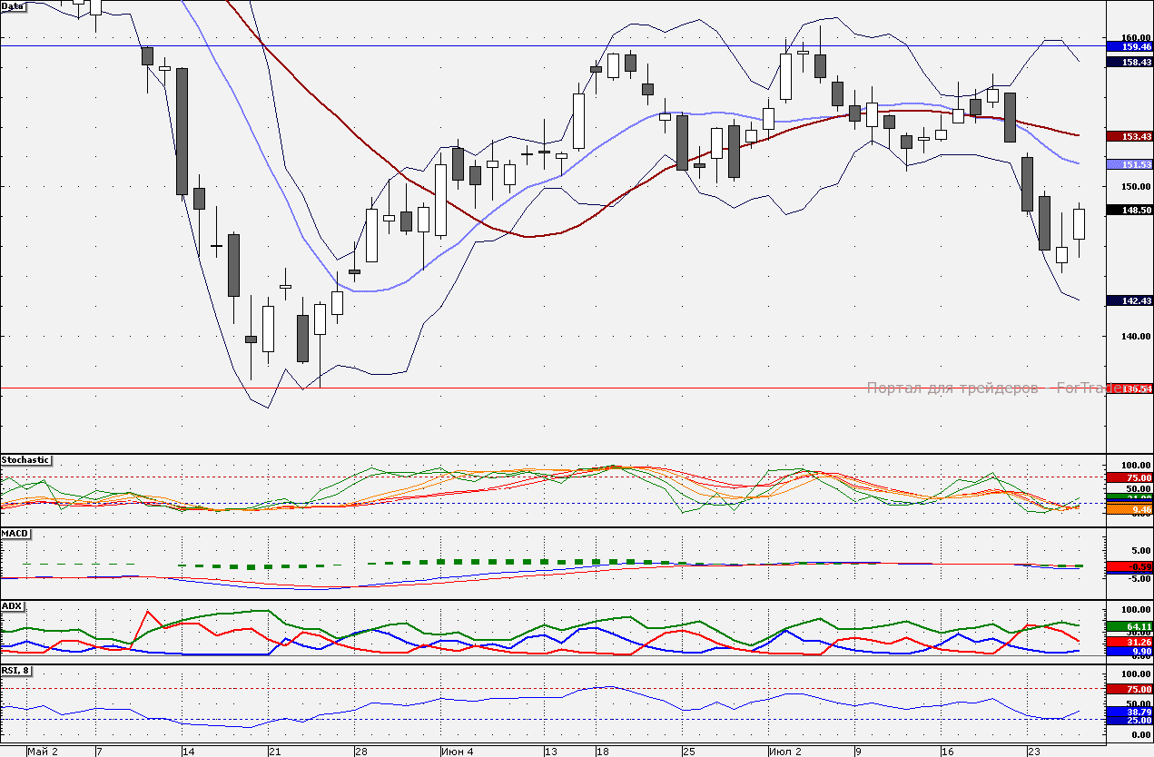 Ближайшие уровни поддержки: 145,00/140,00