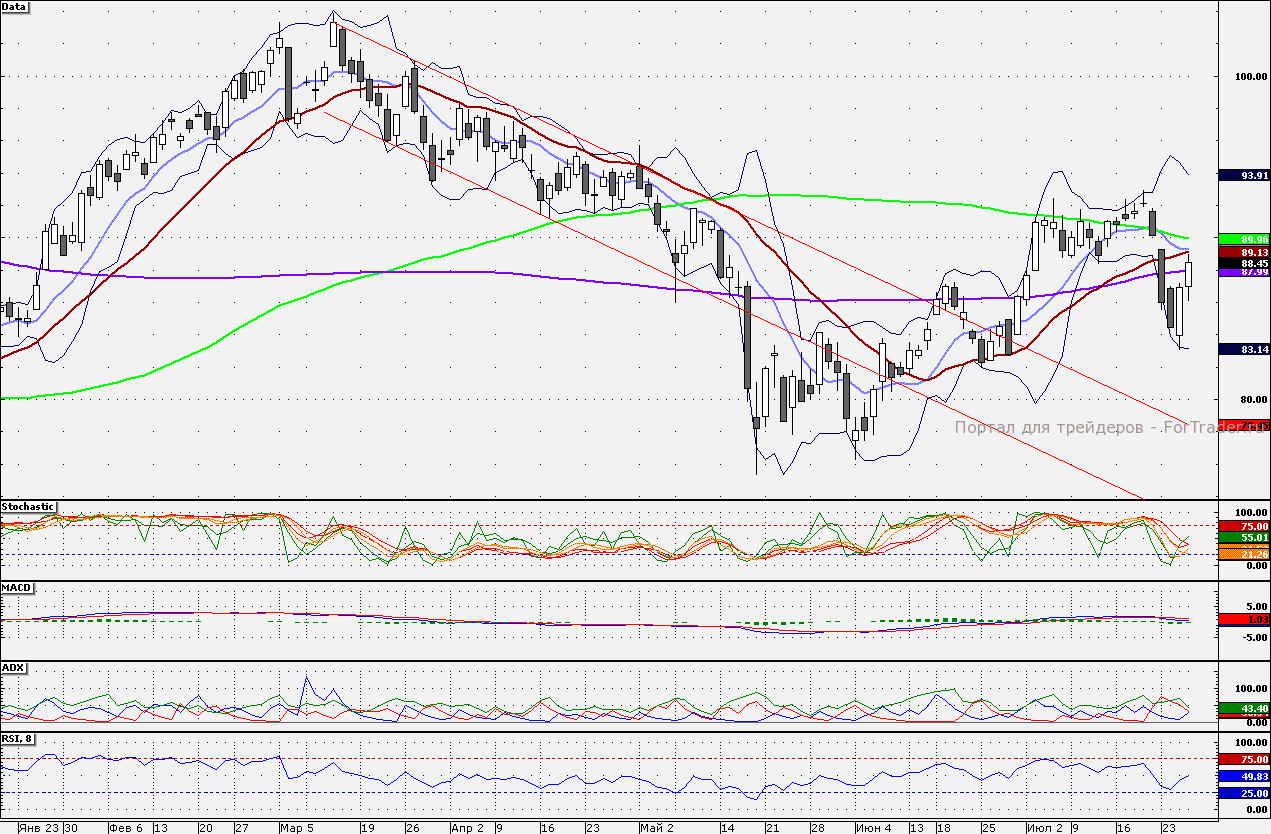 Ближайшие уровни поддержки: 88,00/85,00/82,50
