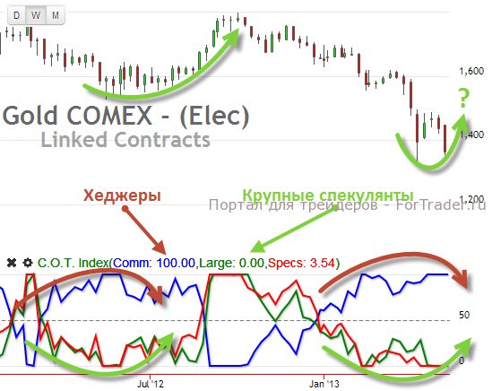 И наоборот — рекордное число позиций на покупку среди крупных и мелких спекулянтов наряду с обратной ситуацией среди хеджеров говорит о вероятном приближении нового медвежьего рынка. Разворот, как правило, происходит в течение месяца после возникновения сигнала, и всегда должен подтверждаться техническим анализом.