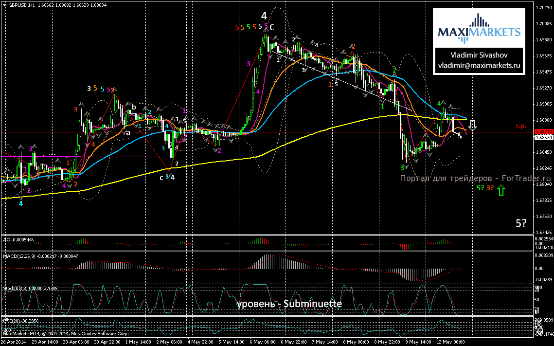 В нашем прогнозе на сегодня предполагаем продолжение текущей коррекции и подъём пары в ценовую зону 1.6888 ÷ 1.6910, а затем возобновление нисходящего движения курса британской валюты к целевым уровням: 1.6870, 1.6857, 1.6842 и 1.6820.