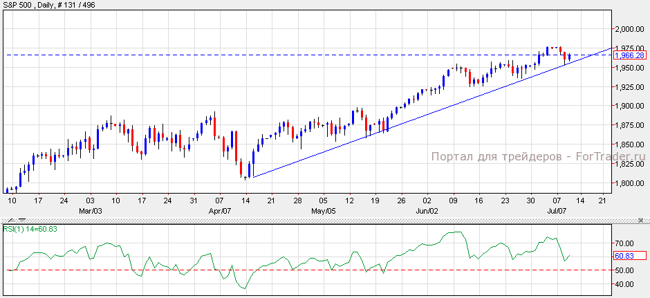 Американские индексы завершили торги на высоте, NASDAQ прибавил 0.63%, Dow Jones вырос на 0.47%, а S&P 500 вырос на 0.46%. Согласно техническому анализу дневного графика, пока S&P 500 держится выше линии восходящего тренда с индикатором относительной силы выше уровня 50, индекс может вырасти к отметке 1,985. Тем не менее, прорыв ниже данной линии станет началом коррекции к отметке 1,950.