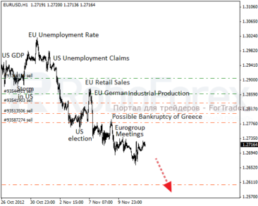 Единственное, что сейчас сдерживает EUR/USD от серьёзного обвала — риск наступления «финансовой пропасти» в США в январе следующего года. Пока какого-то прогресса на переговорах в Конгрессе не наблюдается. Барак Обама продолжает серию встреч с лидерами профсоюзов, общественных организаций и бизнес-объединений с целью оказать давление на республиканцев, имеющих большинство в Палате представителей. Тем временем, как показывают последние опросы, пессимизм среди американских бизнесменов нарастает с каждым месяцем.