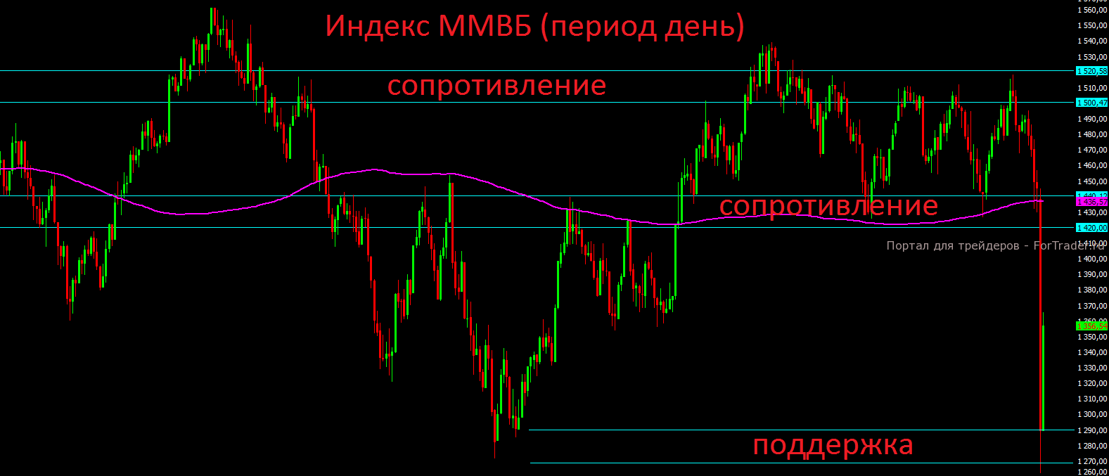 Американский индекс SP500 вновь вчера переписал исторические максимумы и закрылся всего в 1.5% от отметки 1900 пунктов. Коррекция за океаном это ещё один фактор риска для российских площадок, но вот какая новость станет “чёрным лебедем”, которая спровоцирует коррекцию в Америке, пока не понятно. Мы уже в январе озвучивали максимальные цели по американскому индексу SP500 в диапазоне 1890-1910 пунктов, после чего рассчитываем увидеть коррекцию на 2-3 месяца в пределах 10-15%. Как только начнётся коррекция в США, российские индексы вновь продолжат своё снижение, поэтому минимальные отметки года, которые российский фондовый рынок показал в понедельник, скорее всего, в ближайшие 3-4 недели ещё раз будут переписаны. Озвученные нами цели снижения на март пока выполнены, отметка 1100 пунктов по индексу РТС мы увидели. Финальные цели коррекции мы по-прежнему рассчитываем увидеть ближе к лету в диапазоне 900-1000 пунктов по индексу РТС.