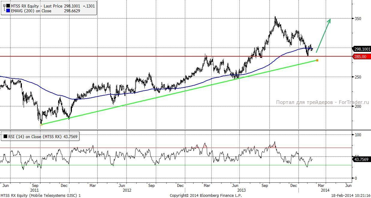 Для долгосрочных вложений мы по-прежнему рекомендуем акции МТС. Трендовое движение продолжается, а коррекция как раз даёт повод для покупки. Уровень 285 является значимой поддержкой, пробить его будет достаточно трудно.
