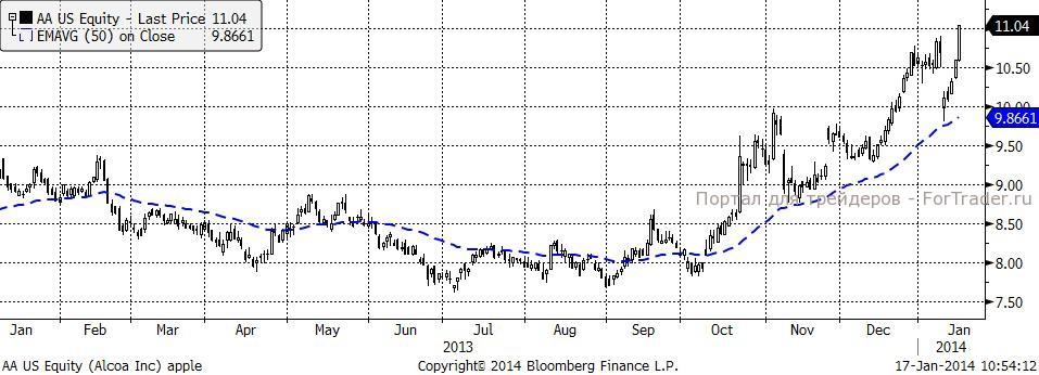 Плохая отчётность акциям Alcoa не помеха. После выхода негативной отчётности акции открылись резким гэпом вниз, однако за последние три сессии акции отыграли все потери и закрылись выше хая начала 2012 года. Этому предшествовали новости о сокращении мощностей, которые сейчас мало востребованы, а также отчеты SEC о том, что менеджмент компании самостоятельно покупает акции предприятия, что является положительным знаком для долгосрочных сделок. Мы по-прежнему считаем, что акции компании недооценены рынком и рассчитываем на долгосрочный рост.