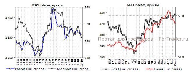 На торгах в среду рост показал только индекс SSE (+0,22%). Остальные биржи закрылись в минусе, Nikkei -1,98, Kospi -1,56, Hang Seng -0,08%. На азиатских инвесторов оказывает негативное влияние продолжение конфликта между Японией и Китаем. Министр финансов Китая и глава Народного банка даже отказались приехать в Токио на ежегодную сессию МВФ и Всемирного банка, представлять Китай будут заместители глав соответствующих ведомств. Инвесторы опасаются, что замедление темпов роста экономики Китая и ее территориальный спор с Японией негативно отразятся на корпоративных прибылях.