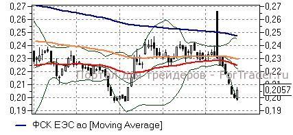 ФСК ЕЭС (+2,75%) – акции совершают отскок от локальных минимумов и сегодня вышли из зоны перепроданности, что является неплохим для игроков на повышение сигналом, указывающим на возможность продолжения повышения. На дальнейший рост стоит рассчитывать при сохранении благоприятного внешнего фона и способности удержаться выше преодоленных сопротивлений. В этом случае бумаги вполне могут подняться в район ряда «долгих» скользящих средних дневного графика (0,225-0,230 руб), однако, «быкам» стоит проявлять повышенную осторожность.