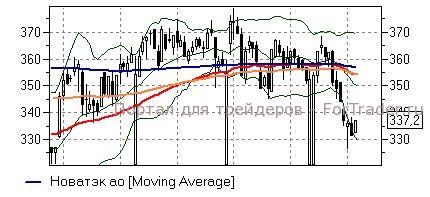 Новатэк (+1,95%) – акции сегодня пытаются восстановиться от локальных минимумов, однако, для подтверждения настроя на рост необходимо закрепиться как минимум выше ближайшего о сопротивления 336 руб. Технические индикаторы дневного графика говорят об уменьшении сил «медведей» и выходе бумаг из зоны перепроданности, что указывает на неплохие шансы развить отскок, однако, менее рискованным игрокам лучше дождаться подтверждения намерений «быков». При способности устоять выше 336 руб шансы акций на движение в район 350 руб (средняя полоса Боллинжера) возрастут.