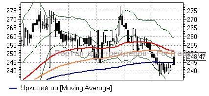 Уралкалий (+2,08%) – акции сегодня поднялись выше средней полосы Боллинжера дневного графика (247 руб) и вышли за рамки «боковика» 239,5-244 руб, торговля в котором проходила последние несколько дней, что является положительным для игроков на повышение сигналом, указывающим на неплохие шансы котировок продолжить рост. На пути бумаг, однако, расположен также ряд «долгих» скользящих средних (250-251,5 руб), пробития которых стоит дождаться для подтверждения настроя на рост ближе к 260 руб (верхняя полоса Боллинжера). Отскок акций от важных сопротивлений будет говорить о рисках возобновления снижения, хотя технические индикаторы на данный момент говорят в пользу более высокой вероятности восходящего движения.