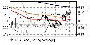 ФСК ЕЭС (+0,43%) – акции после закрепления выше линии EMA100 дневного графика (0,216 руб) стремятся к последнему важному сопротивлению – линии EMA200 (0,23 руб), чего в целом не исключают технические индикаторы. Показатели, однако, предупреждают о близости котировок к зоне перекупленности (RSI) и ограниченности сил «быков» — на движение выше чем 0,23 руб пока лучше не рассчитывать.