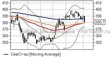 Северсталь (-2,54%) – акции в ходе коррекции прошлой недели смогли устоять выше средней полосы Боллинжера и линии EMA200 дневного графика (385,7-387,6 руб), которые вновь тестируют на прочность сегодня. Пока бумаги расположены ниже указанных отметок, то держат курс на другие «долгие» скользящие средние (район 379,5 руб) при пробитии которых следующей целью снижения выступит нижняя полоса Боллинжера (375 руб). Игрокам на данный момент лучше воздержаться от открытия «длинных» позиций.
