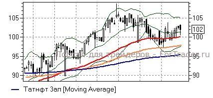 Татнефть ап (-0,59%) – акциям по итогам двух предыдущих дней удалось закрепиться выше средней полосы Боллинжера дневного графика (101 руб), что открывает бумагам дорогу к движению в район верхней полосы Боллижера и отметки 105 руб. Сегодня котировки, однако, корректируются с достигнутых вершин и если им по итогам дня не удастся устоять выше 101 руб игрокам на повышение стоит закрывать «длинные» позиции ввиду опасности возвращения к локальным минимумам и уровню 97 руб.