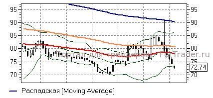 Распадская (-1,62%) – акции после взлета на прошлой неделе в район линии EMA200 (90 руб) неуклонно двигаются вниз и находятся не так далеко от важной поддержки 70,5 руб, которая препятствовала развитию снижения бумаг в июне и августе текущего года. Акции ещё имеют потенциал падения до входа в зону перепроданности, и поэтому игрокам стоит быть готовыми к движению к указанной отметке. Способность же по итогам дня удержать ближайшую поддержку, при условии благоприятного внешнего фона, будет говорить о возможности коррекционного роста ближе к 78 руб (линия EMA55).