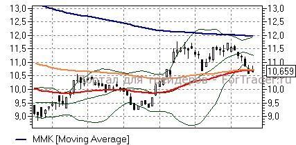 ММК (+0,73%) – акции по итогам вчерашнего дня опустились ниже последних ключевых поддержек дневного графика в виде линий «долгих» скользящих средних (10,7 руб), но сегодня стремятся отыграть утерянные позиции. Технические индикаторы при этом говорят о том, что сила нисходящего движения увеличивается, а бумаги ещё имеют потенциал падения до входа в зону перепроданности, что предупреждает о рисках скорого разворота сегодняшних настроений. Сигналом, свидетельствующим в пользу возможности коррекционного отскока ближе к 11,3 руб (средняя полоса Боллинжера), была бы способность акций по итогам дня устоять выше 10,7 руб. В обратном случае «быки» столкнутся с высокой опасностью развития снижения.