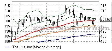 Татнефть ао (+0,39%) – акции сегодня поднимались выше важной линии дневного графика – средней полосы Боллинжера (202,5 руб), от способности по итогам дня удержать которую будет зависеть направление их краткосрочного движения. С технической точки зрения бумаги готовы к тому, чтобы развить отскок от локальных минимумов и вернуться к верхней полосе Боллинжера (210 руб), однако, для подтверждения сигнала стоит дождаться закрепления выше сопротивления.