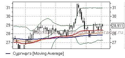 Сургутнефтегаз ао (+0,1%) – акции удерживаются выше «долгих» скользящих средних дневного графика (27,8-28,5 руб), однако, в то же время остаются и ниже средней полосы Боллинжера (29,1 руб), до преодоления которой стоит воздержаться от открытия краткосрочных «длинных» позиций ввиду опасности развития нисходящего движения.