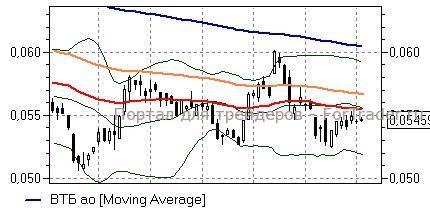 ВТБ (+0,18%) – акции в ходе восстановления с локальных минимумов подошли к важным сопротивлениям дневного графика в виде средней полосы Боллинжера и линии EMA55 (5,55 коп), у которых приостановили повышение. Технические индикаторы, с одной стороны, дают умеренно положительные сигналы, однако, предупреждают и о слабости восходящего движения – до закрепления выше отметки 5,55 коп стоит воздержаться от открытия «длинных» позиций ввиду опасности возвращения к уровню 5,25 коп.