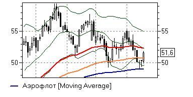 Аэрофлот (+2,61%) – акции после отскока от последней важной поддержки дневного графика в виде линии EMA200 (49 руб) сегодня тестируют на прочность линию EMA100 (50,75 руб) и ещё имеют потенциал краткосрочного роста как минимум в район средней полосы Боллинжера и линии EMA55 (52,4 руб). До закрепления бумаг выше последней отметки не стоит открывать новые «длинные» позиции в виду опасности отскока от важного сопротивления. «Медведи» хотя и уменьшили свои силы, всё ещё сохраняют за собой инициативу на рынке, а акции в среднесрочном периоде перешли к нисходящему тренду.
