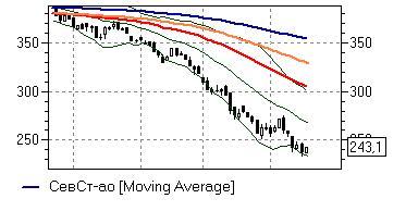 Северсталь (+2,61%) – акции пытаются восстановиться от достигнутых вчера годовых минимумов, сохраняя «бычью» дивергенцию с индексом RSI на дневном графике и, соответственно, имея неплохие шансы развития отскока в район средней полосы Боллинжера (265,6 руб). Положительные сигналы, однако, требуют подтверждения в виде способности бумаг закрепиться как минимум выше ближайшего сопротивления 248,5 руб. В обратном случае котировки вполне могут возобновить падение.